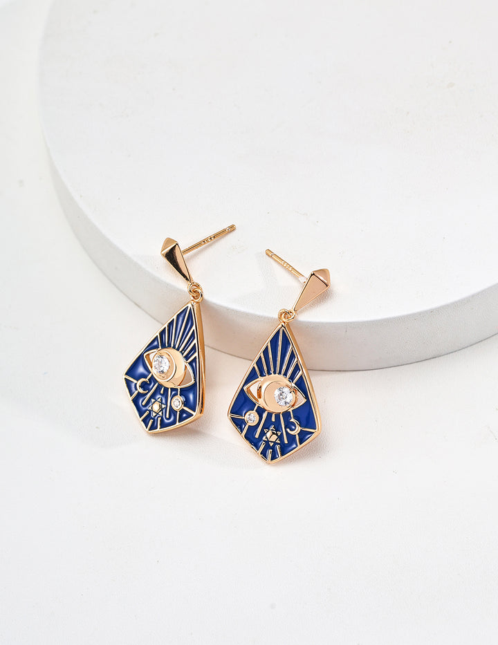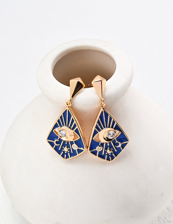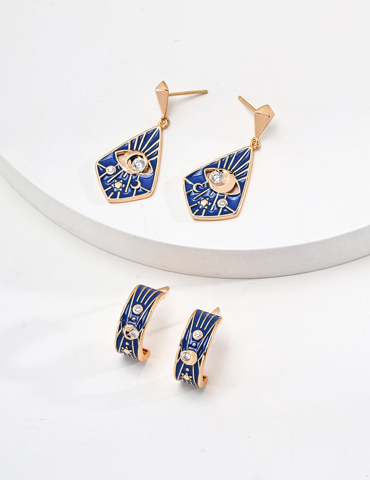 Hand-Poured Zircon Stone Hoops Vintage Blue Enamel Earrings with 925 Sterling Silver