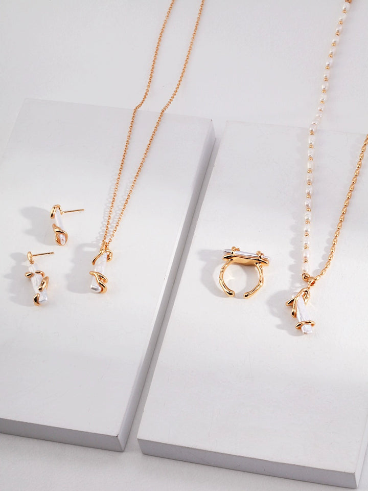 Vintage Gold Pearl Necklace (Adjustable)