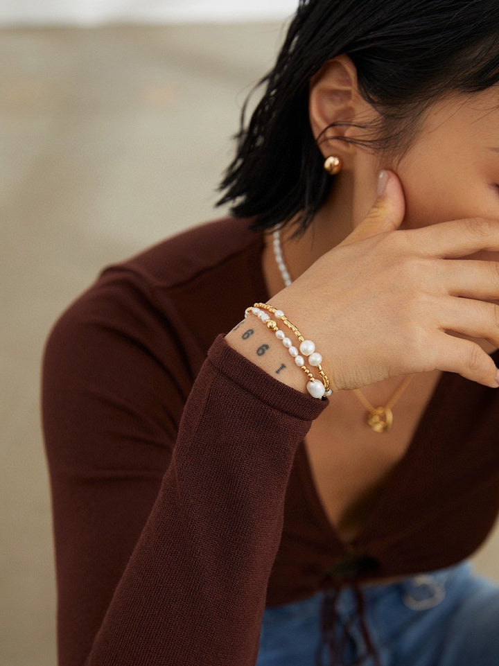 Simsmore [Extremely Simple French Style Series] Pure Silver Pearl Adjustable Fashion Niche Original Design Bracelet