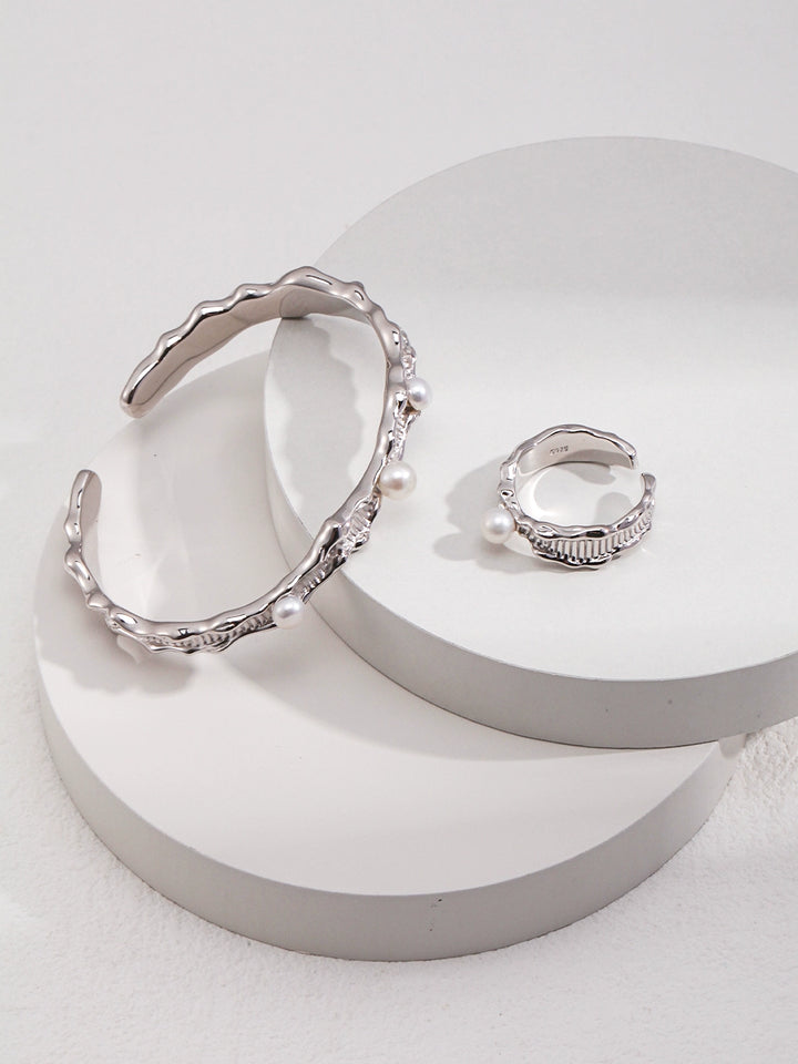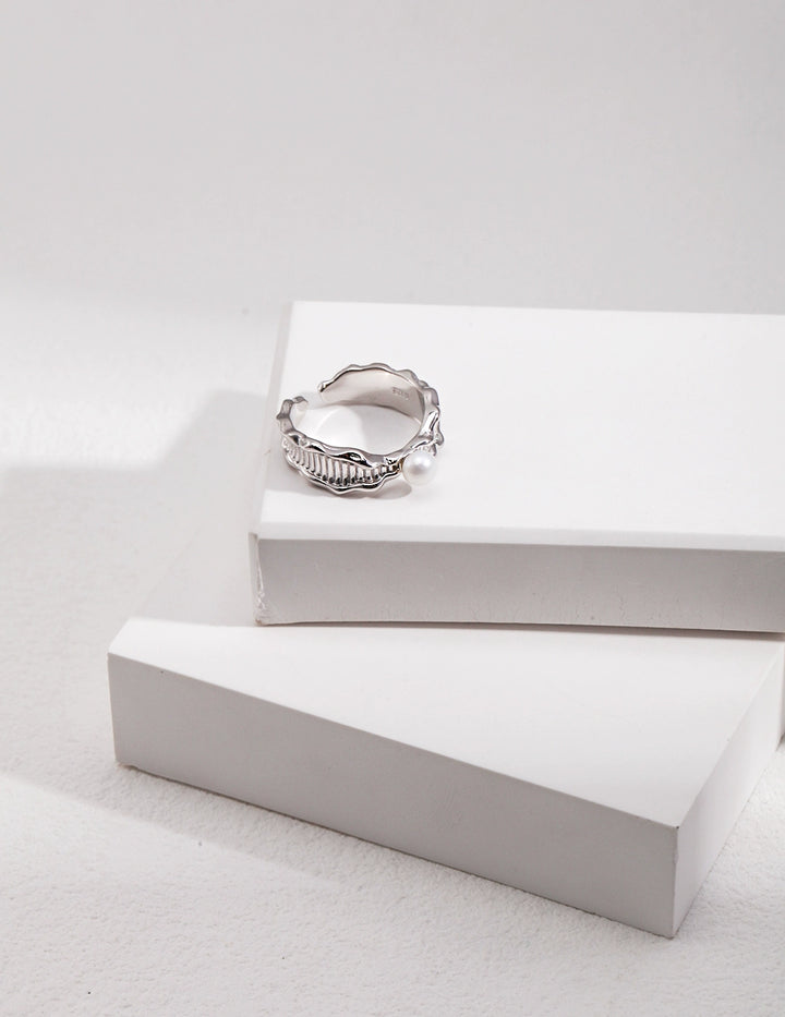 Simsmore minimalist French series niche design natural pearl fashion personality pure silver open ring