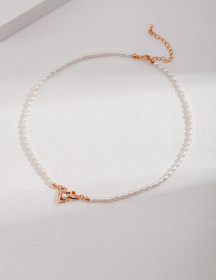 Simsmore minimalist French series pure silver heart interwoven natural pearl temperament simple design necklace