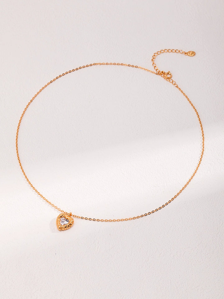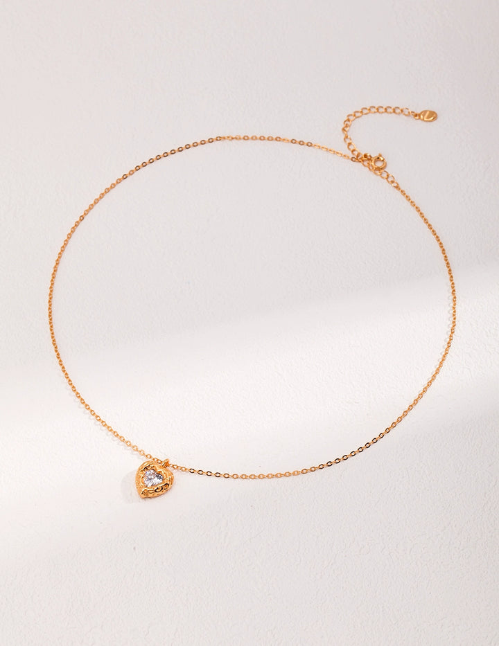 Simsmore minimalist French series pure silver heart-shaped zircon light luxury niche design high-end necklace