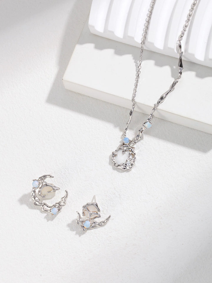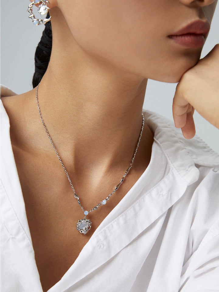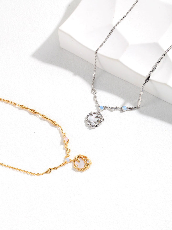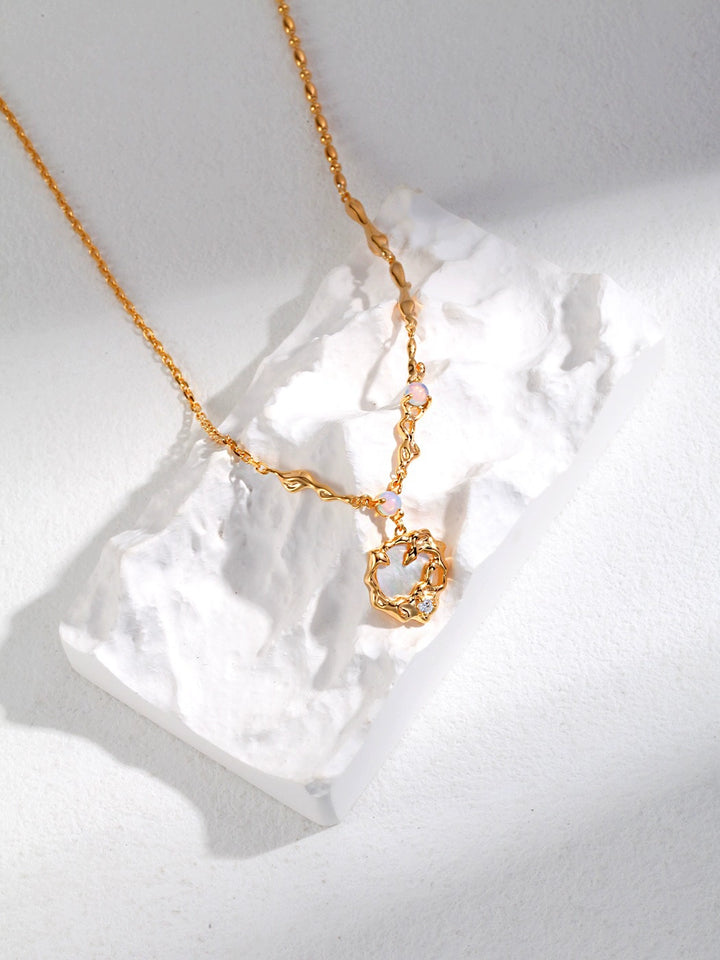Simsmore Opal Series S925 Pure Silver Mother Shell Clavicle Chain Light Luxury Retro, Small and High End Necklace